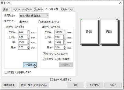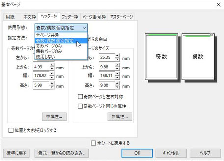 ヘッダー枠〔奇数/偶数個別指定〕の設定